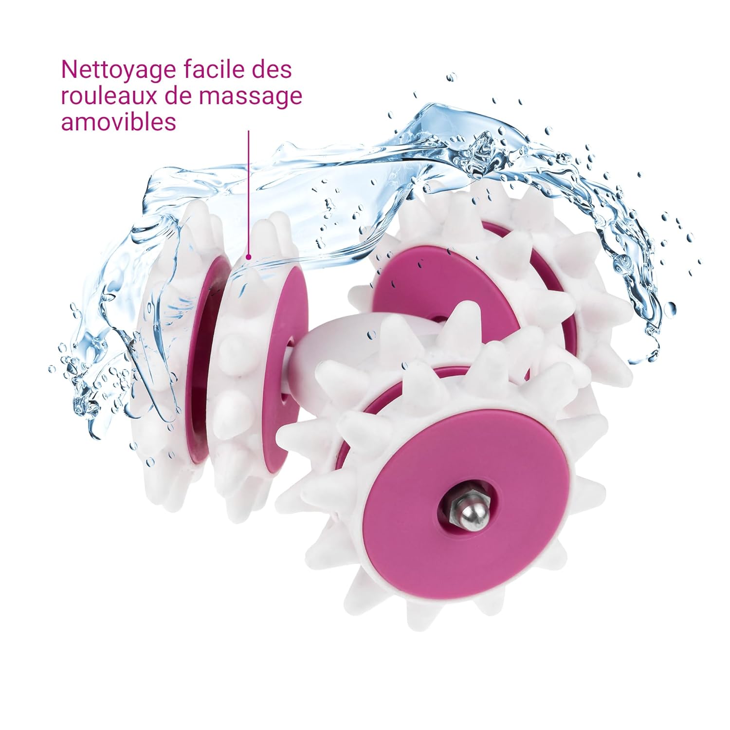 - Entretien simplifié : les rouleaux de massage se retirent facilement et se nettoient à l’eau, garantissant une hygiène optimale.