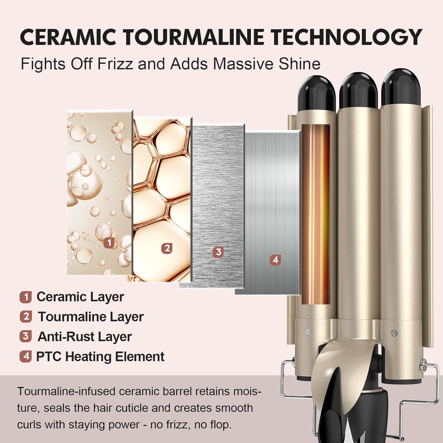 Avis et témoignages clients sur : Fer a Boucler 3 Tetes Waver 32mm, AIMERVO GRANDES VAGUES Fer Onduler Wavy 14 Températures à Contrôle de 80⁰C à 210⁰C- Ecran LCD, Revêtement en Tourmaline-Céramique, Chauffage Rapide de 30 Secondes