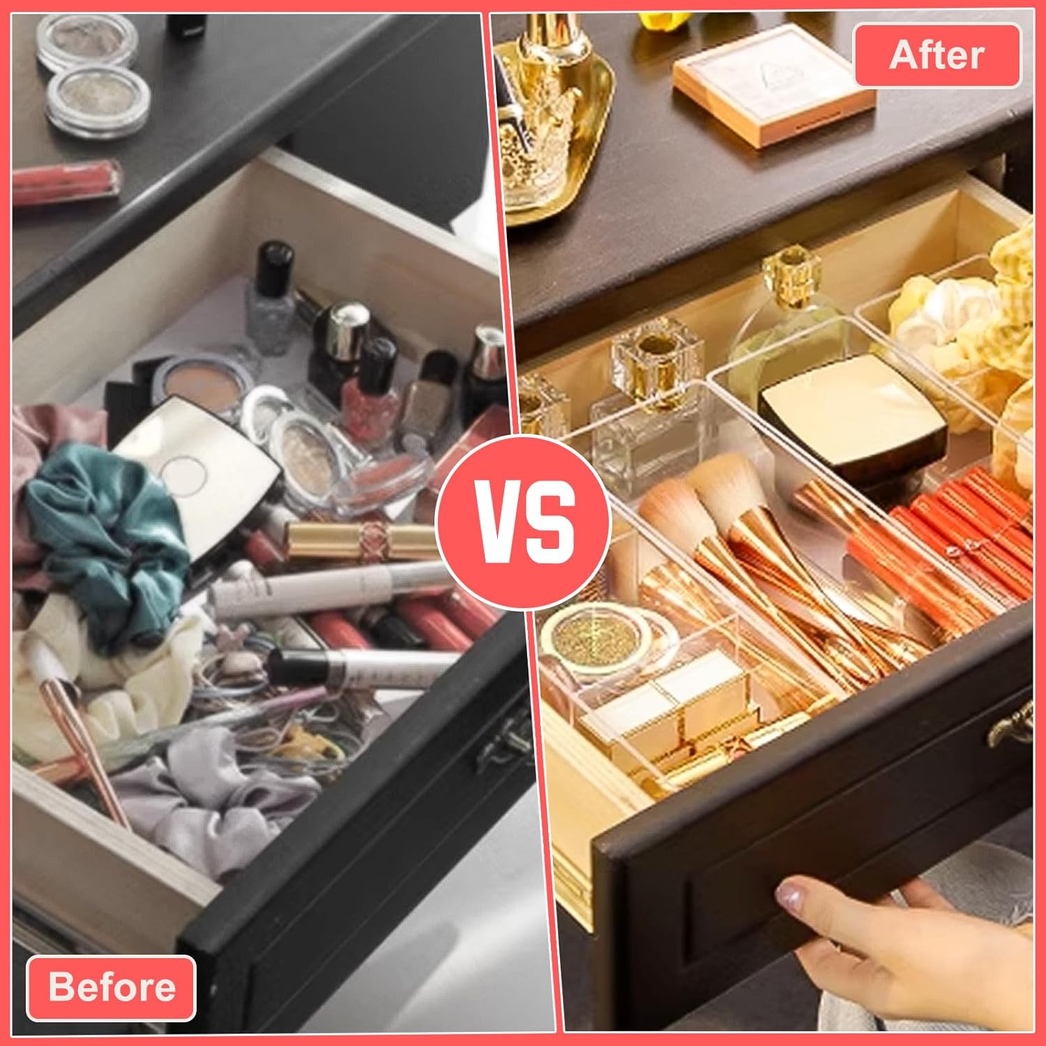 Maria : J’adore ces récipients en plastique ! Je ne les utilise pas seulement pour le maquillage, mais aussi pour organiser mes fournitures de papeterie. Ils sont très polyvalents et s’adaptent à n’importe quel tiroir, même les plus étroits.