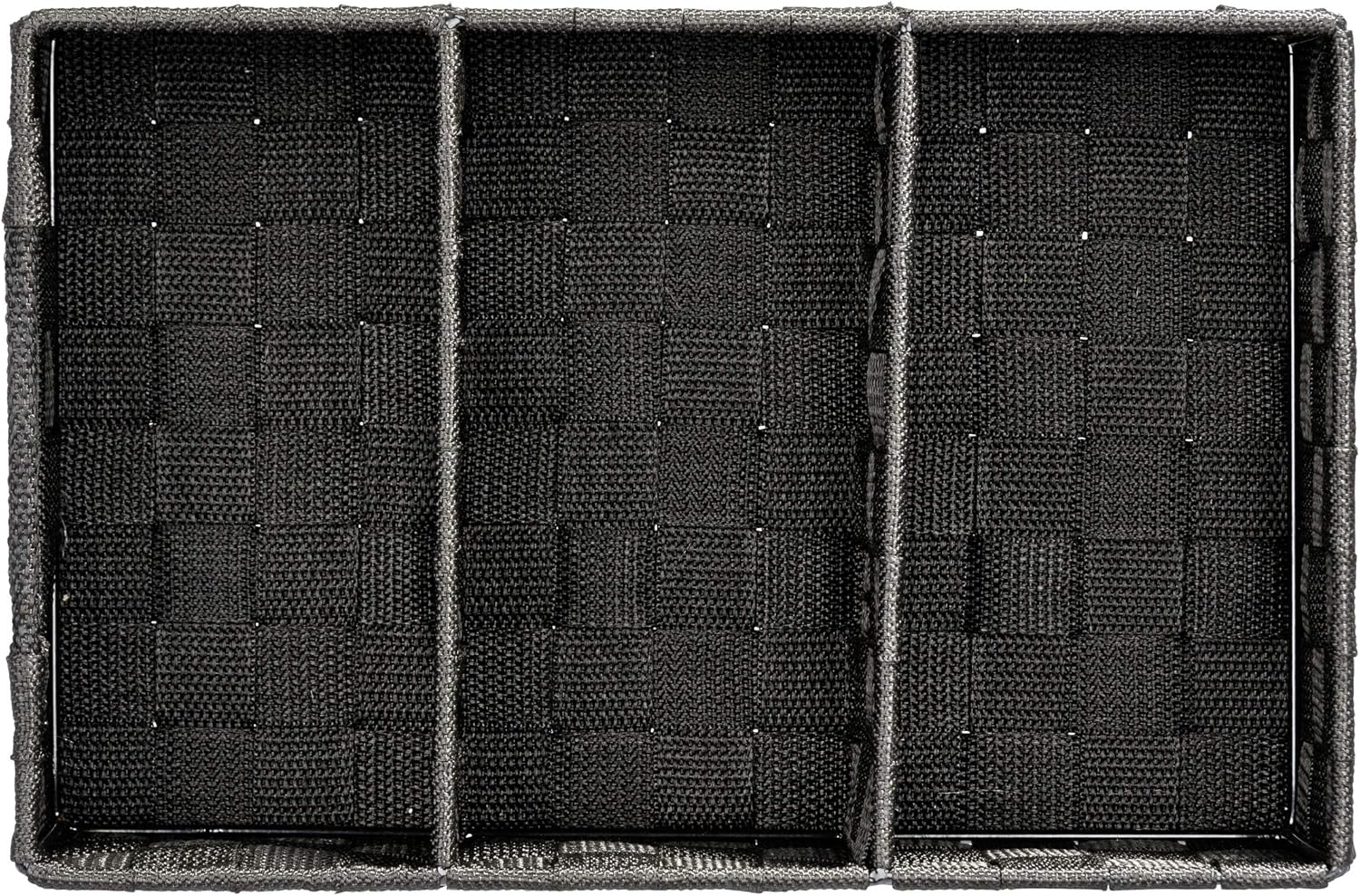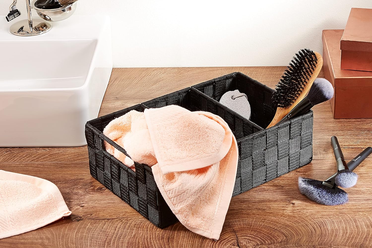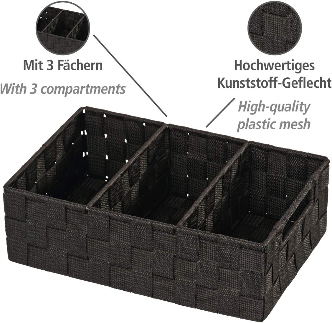Avis et témoignages clients sur : WENKO Organiseur de Salle De Bain Adria avec Poignés, Boîte De Rangement avec 3 Compartiments, Plastique Tissé, en Polypropylène, Dimensions : 32 x 10 x 21 cm, Couleur : Noir