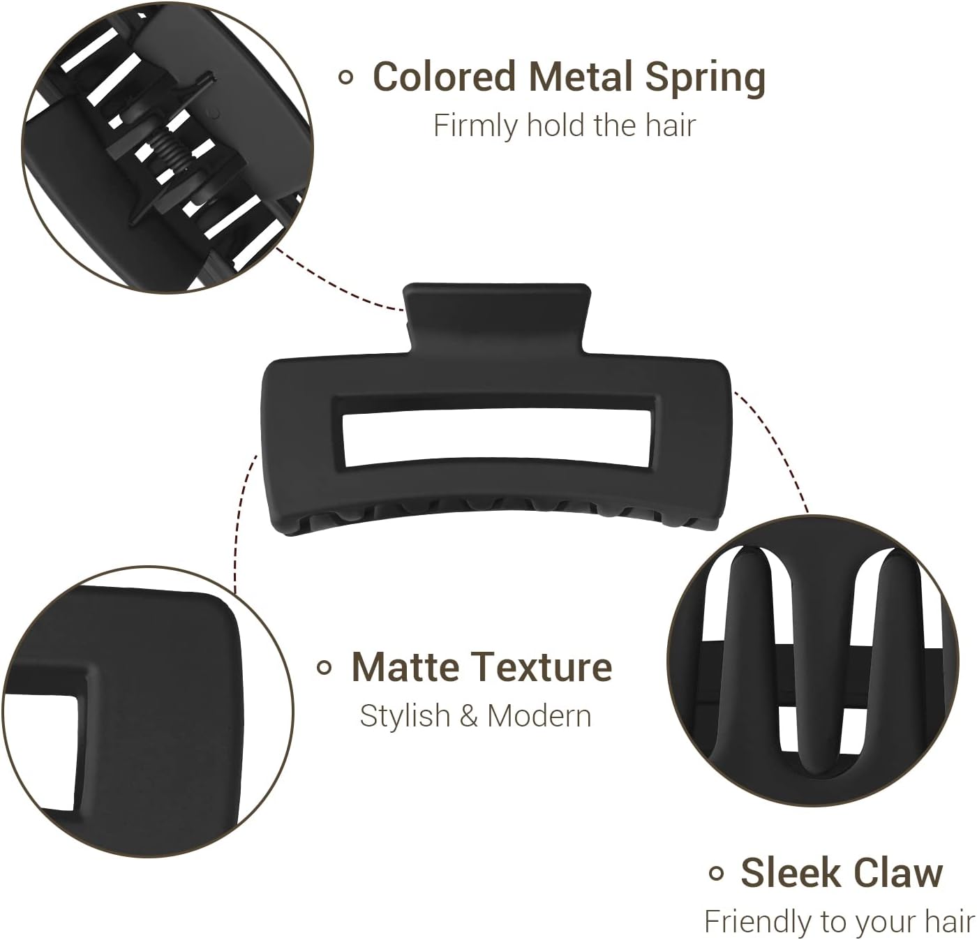 - Antidérapantes : Les griffes puissantes maintiennent vos cheveux en place tout en restant douces au toucher.